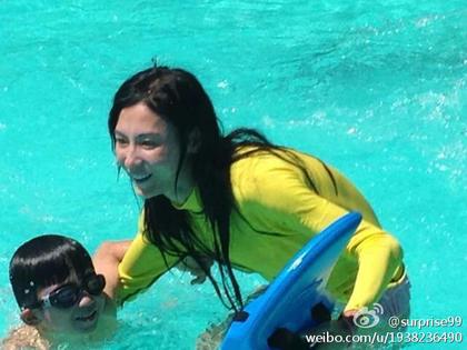 張柏芝帶兒子Lucas游泳玩水。(圖片來自臺媒)