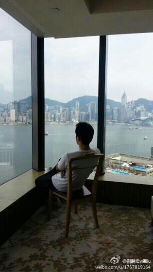 劉畊宏18日晚間在微博放上一張周杰倫面對(duì)大海凝望的背影照。(圖片來自劉畊宏微博)