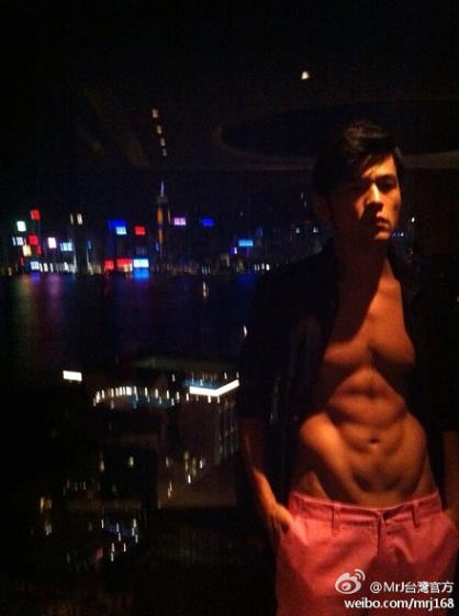 MrJ微博18日也曬出一張周杰倫露出性感人魚線的照片。(圖片來自MrJ臺(tái)灣官方微博)