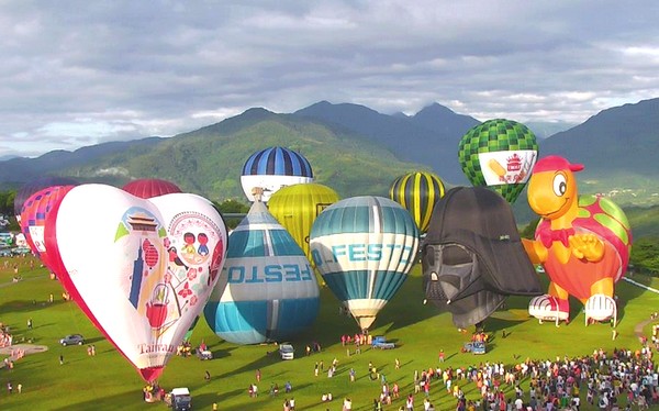鹿野高臺今天人聲鼎沸,包括黑武士、烏龜、乳牛等造型球都齊聚一堂。(圖片來自臺灣“中廣新聞網(wǎng)”)