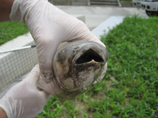 死亡魚體的嘴巴及魚鰓等部位,都充滿泥砂。(圖片來自臺灣“中廣新聞網(wǎng)”)