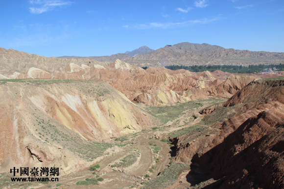 “海峽兩岸記者西北行”聯(lián)合采訪團(tuán)參訪張掖丹霞國(guó)家地質(zhì)公園,感受中國(guó)第一七彩丘陵神奇景觀。(中國(guó)臺(tái)灣網(wǎng) 王文英 攝)