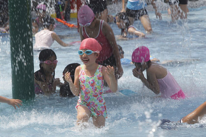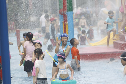 臺北市中午出現(xiàn)今夏最高溫,臺北自來水源區(qū)擠滿戲水民眾。(圖片取自臺灣媒體)