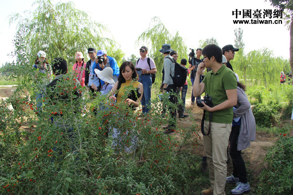 兩岸記者在中寧品嘗新鮮枸杞。(中國臺灣網(wǎng) 王文英 攝)