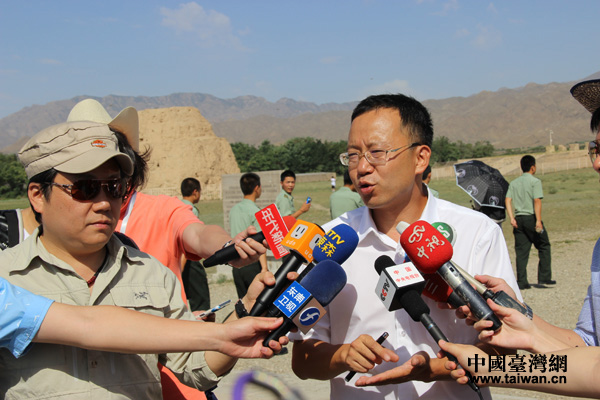 西夏博物館館長在三號陵園接受兩岸記者采訪。(中國臺灣網(wǎng) 王文英 攝)