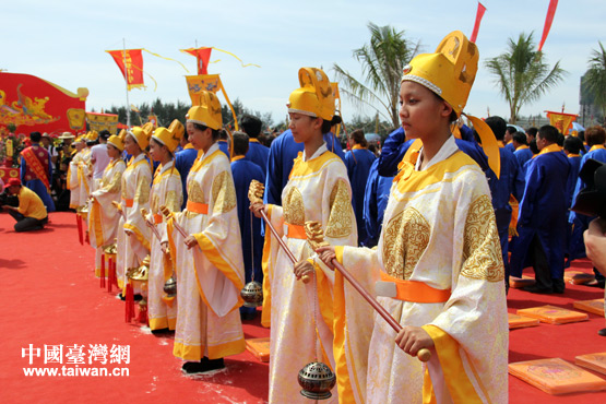8月1日上午,2013兩岸媽祖佑南疆祈福祭典儀式在海南潭門港舉行。圖為祭典儀式現(xiàn)場。(中國臺灣網(wǎng) 李丹 攝)