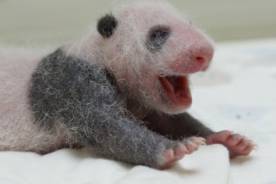 熊貓“圓仔”體重突破1公斤 儼然長成“大姑娘”(圖片取自臺灣“中央社”)