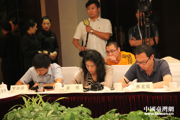 參加會見的臺灣部分記者(前排)。(中國臺灣網(wǎng) 王文英 攝)
