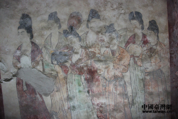 永泰公主墓內(nèi)的宮女圖壁畫。(中國(guó)臺(tái)灣網(wǎng) 王文英攝)