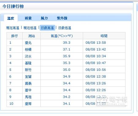 臺(tái)灣各地8日前半天高溫記錄(來源:臺(tái)灣“中國(guó)時(shí)報(bào)電子版”)