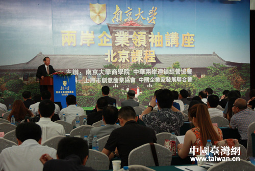 8月10日上午,由南京大學(xué)和中華兩岸連鎖經(jīng)營(yíng)協(xié)會(huì)聯(lián)合主辦的“兩岸企業(yè)領(lǐng)袖講壇北京課程”在京開課。(中國(guó)臺(tái)灣網(wǎng) 扶海濤 攝)