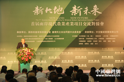 中國(guó)臺(tái)灣網(wǎng)8月11日大連消息 10日,由國(guó)務(wù)院臺(tái)辦、臺(tái)盟中央聯(lián)合舉辦,由中交壁成發(fā)展有限公司承辦的“首屆兩岸現(xiàn)代農(nóng)業(yè)產(chǎn)業(yè)項(xiàng)目交流對(duì)接會(huì)”在大連盛大開(kāi)幕,自10日起本次大會(huì)將在大連、長(zhǎng)春、哈爾濱三個(gè)城市連續(xù)舉辦。