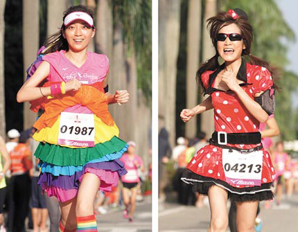 美津濃女性馬拉松11日清晨臺(tái)北登場(chǎng),現(xiàn)場(chǎng)有如一場(chǎng)女性變裝PARTY。(來源:臺(tái)灣《中國(guó)時(shí)報(bào)》)