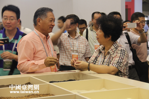 嘉賓在五谷雜糧區(qū)探討農業(yè)知識。(中國臺灣網 王君飛 攝)