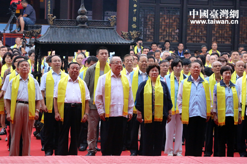 中國(guó)臺(tái)灣網(wǎng)8月14日贛州消息 細(xì)雨綿綿,訴說(shuō)客家情。14日上午,中國(guó)國(guó)民黨榮譽(yù)主席吳伯雄、臺(tái)灣中華海峽兩岸客家文經(jīng)交流協(xié)會(huì)理事長(zhǎng)饒穎奇率臺(tái)灣400余客家鄉(xiāng)親在贛州市贛縣客家文化城參加祭祖大典活動(dòng)。