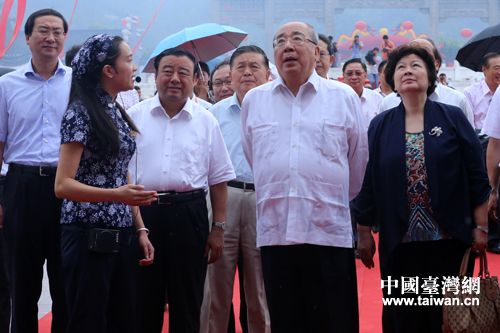 中國國民黨榮譽(yù)主席吳伯雄(前排右二)一行人參觀贛州市贛縣文化城宗祠。(中國臺(tái)灣網(wǎng) 郜利敏 攝)