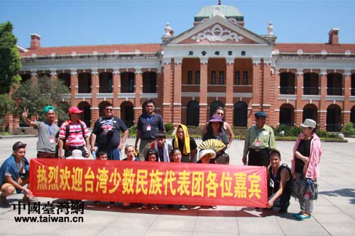 臺灣少數(shù)民族參訪團在武昌起義博物館前合影。(中國臺灣網(wǎng) 雍紫薇 攝)