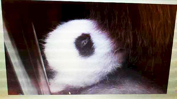 大熊貓寶寶“圓仔”,今天在媽媽“圓圓”懷里喝奶的時候,終于睜開了眼睛。(圖片來自臺媒)