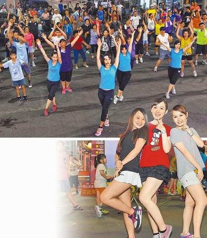參加夜跑的臺灣民眾先做暖身運動,也有辣妹前來共襄盛舉。(圖片來自臺媒)