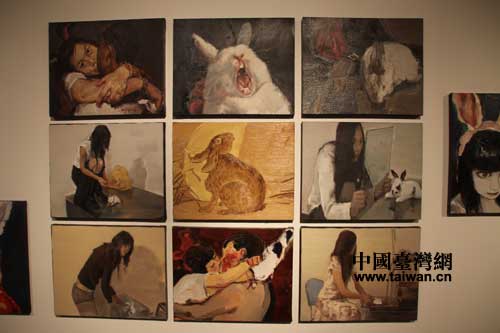 大陸畫家袁文彬作品“兔子兔子”之一(中國臺灣網(wǎng) 蕪?fù)?攝)