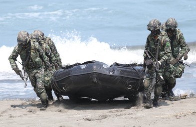 臺(tái)軍志愿役海軍陸戰(zhàn)隊(duì)軍事操演。(圖片來(lái)自臺(tái)媒)