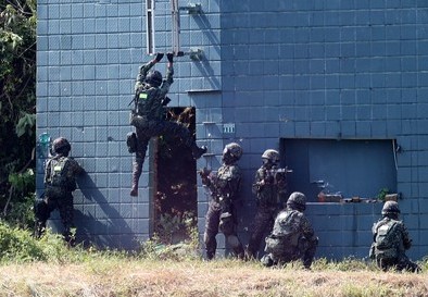 臺軍志愿役海軍陸戰(zhàn)隊軍事操演。(圖片來自臺媒)
