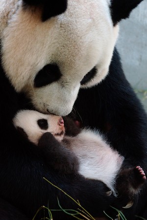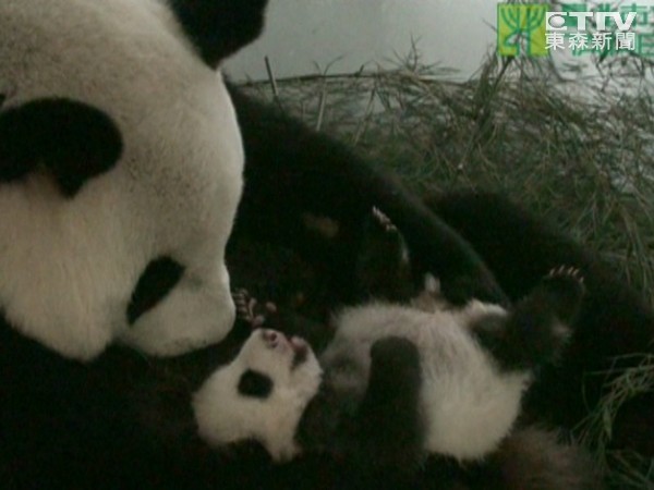圓仔與媽媽面對面躺著,這樣圓圓可以隨時抱起圓仔,圓仔餓了,也可以馬上找到喝奶的方向,這是牠們母子之間,最有默契的相處姿勢。工作人員說,“圓圓照顧圓仔是無微不至,今天早上我們秤重的紀錄是顯示圓仔增重到3162.6克!