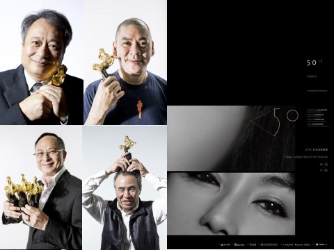 金馬執(zhí)委會(huì)公布四大導(dǎo)演領(lǐng)軍的四大活動(dòng),以及金馬50主視覺(圖右)。(圖片來自臺(tái)媒)