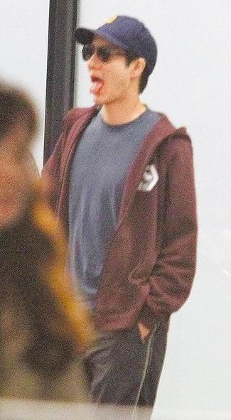 王力宏返臺步出桃園國際機場海關,吐舌模樣俏皮。(圖片來自臺媒)