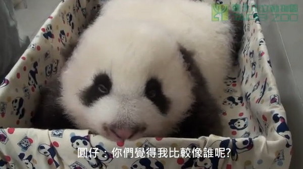 園方表示圓仔穿的是“團團牌”的窄版小背心,眼睛微微上揚,黑眼圈的色塊較窄,和爸爸簡直是一個模子印出來的,整張臉就是縮小版的團團。
