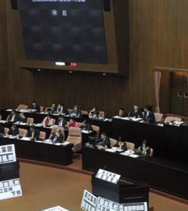 “立法院”上午“國(guó)是論壇”后,“立法院長(zhǎng)”王金平宣布開會(huì),民進(jìn)黨、臺(tái)聯(lián)黨“立委”打出抗議標(biāo)語,國(guó)民黨團(tuán)見狀請(qǐng)求協(xié)商。王金平隨即宣布休息協(xié)商,朝野協(xié)商到中午未有結(jié)果,到了下午3時(shí)半朝野再度進(jìn)行協(xié)商。