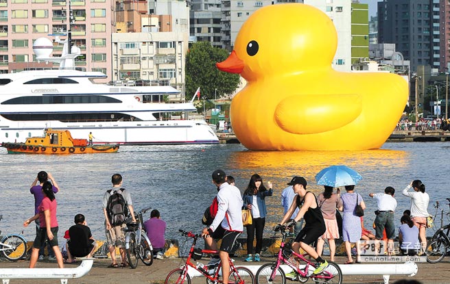 中國臺灣網(wǎng)9月18日消息 據(jù)臺灣“中時電子報”報道,風靡全球,療愈人心的小黃鴨,19日中秋節(jié)開始悠游高雄港光榮碼頭,為期1個月。這只高18米、寬25米,身形是目前亞洲最大、全世界第2大的小鴨,首度在臺展出。因為可能碰上臺風“天兔”,主辦單位已有備案,遇臺風警報會將小鴨泄氣后,移至岸上保護。