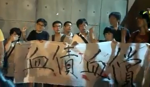 19日凌晨12時(shí)許,一群大學(xué)生在網(wǎng)絡(luò)串聯(lián),集體步行前往中興寓所,最后集結(jié)在一個(gè)崗哨亭附近。一名女學(xué)生準(zhǔn)備在門(mén)口寫(xiě)下抗議標(biāo)語(yǔ)時(shí),被警方發(fā)現(xiàn)制止,學(xué)生們見(jiàn)計(jì)劃受阻,開(kāi)始潑灑油漆與冥紙,大聲呼喊“馬英九負(fù)責(zé)、暴政殺人、血債血還”等口號(hào)。