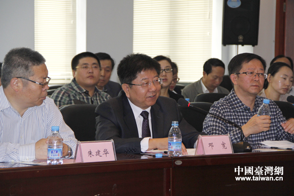 2013寧臺醫(yī)療健康產(chǎn)業(yè)發(fā)展交流研討會22日上午在銀川舉行。寧夏回族自治區(qū)黨委副秘書長、臺辦主任鄧寬參加座談并致辭。(中國臺灣網(wǎng) 普燕 攝)