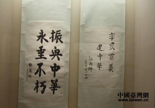 辛亥革命紀念館郁慕明、江丙坤題字。(中國臺灣網 段雯婷 攝)