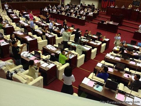 最后綠營議員全體拿出抗議標(biāo)語,要求郝龍斌負(fù)責(zé)、道歉,郝龍斌也因此離席。15分鐘后,郝龍斌回到議場順利上臺(tái)報(bào)告,但綠營議員除了吳思瑤、何志偉、童仲彥外,其余人都不在現(xiàn)場。