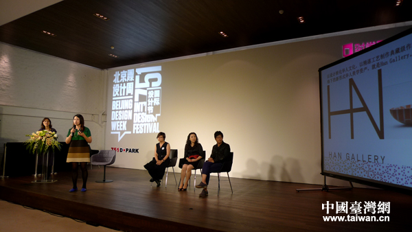 2013北京國(guó)際設(shè)計(jì)周26日開(kāi)幕,來(lái)自臺(tái)灣的10家原創(chuàng)設(shè)計(jì)品牌首次以專(zhuān)館形式在北京751設(shè)計(jì)廣場(chǎng)亮相。圖為臺(tái)灣館發(fā)布會(huì)現(xiàn)場(chǎng),臺(tái)灣參展者回答現(xiàn)場(chǎng)媒體提問(wèn)。(中國(guó)臺(tái)灣網(wǎng) 李徽 攝)