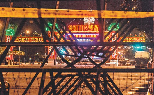 臺灣今天舉行“雙十慶典”,三大民間團體早上將發(fā)起抗議活動,昨晚警方在馬英九辦公室周邊架設(shè)拒馬嚴(yán)陣以待。(圖片來自臺灣《聯(lián)合報》)