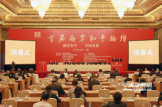 由全國臺(tái)灣研究會(huì)、臺(tái)灣二十一世紀(jì)基金會(huì)等14家兩岸民間團(tuán)體和學(xué)術(shù)機(jī)構(gòu)共同舉辦的首屆兩岸和平論壇12日下午在上海閉幕。(中國臺(tái)灣網(wǎng) 田云鵬 攝)
