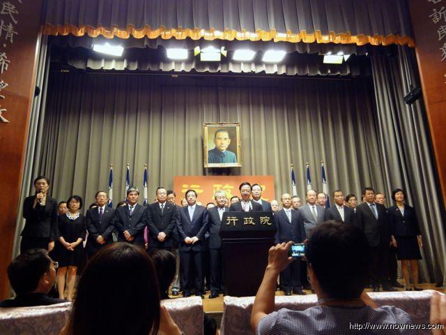 臺(tái)當(dāng)局“行政院長(zhǎng)”江宜樺率37位閣員,召開記者會(huì),響應(yīng)倒閣案。(圖片來自臺(tái)媒)
