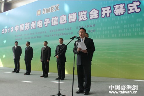 中國(guó)臺(tái)灣網(wǎng)10月16日蘇州消息 以“智慧生活 觸動(dòng)你我”為主題的2013年第12屆中國(guó)蘇州電子信息博覽會(huì)今(16)日在蘇州國(guó)際博覽中心開(kāi)幕。海協(xié)會(huì)會(huì)長(zhǎng)陳德銘,工信部副部長(zhǎng)楊學(xué)山,國(guó)臺(tái)辦主任助理李亞飛等出席開(kāi)幕式。