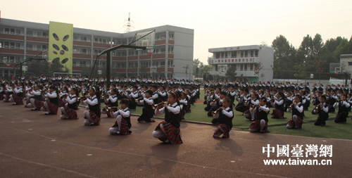 沁陽市實(shí)驗(yàn)小學(xué)學(xué)生表演千人嗩吶演奏,歡迎臺灣師生代表參訪。(中國臺灣網(wǎng) 扶海濤 攝)