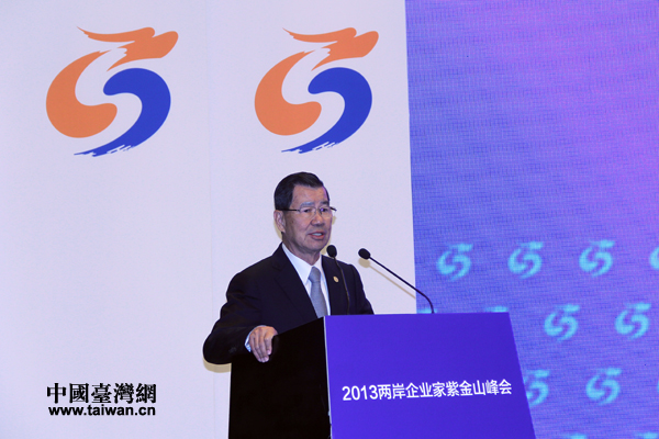 兩岸企業(yè)家峰會(huì)臺(tái)灣方面理事會(huì)長(zhǎng)蕭萬(wàn)長(zhǎng)在閉幕式上致辭。(中國(guó)臺(tái)灣網(wǎng) 王偉 攝)