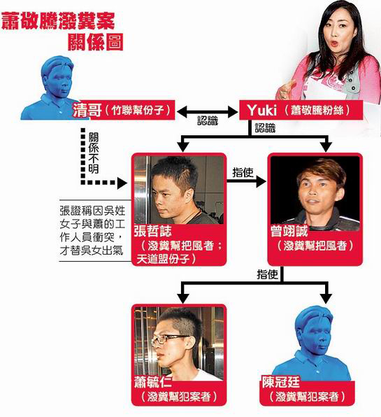 蕭敬騰潑糞案關(guān)系圖。(圖片來(lái)自臺(tái)媒)