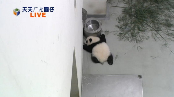 臺(tái)北市立動(dòng)物園直播熊貓“圓仔”畫面。