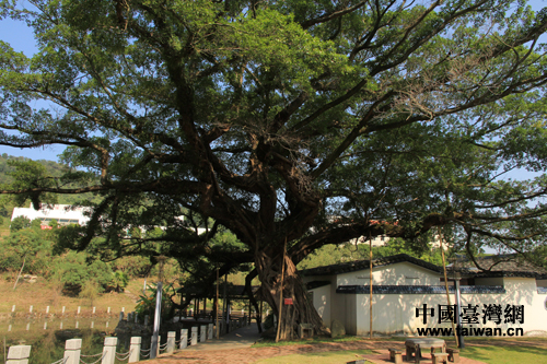 院中的千年古樹“榕包樟”,榕樹包裹樟樹,被稱為“東南亞第一奇樹”。(中國臺灣網(wǎng) 馬迪 攝)