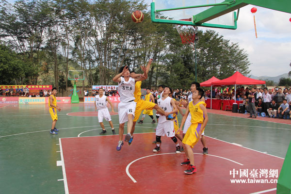 剪彩儀式后,第五屆“土樓杯男子藍(lán)球賽”在新建成的塑膠藍(lán)球場開賽(中國臺(tái)灣網(wǎng) 蕪?fù)?攝)