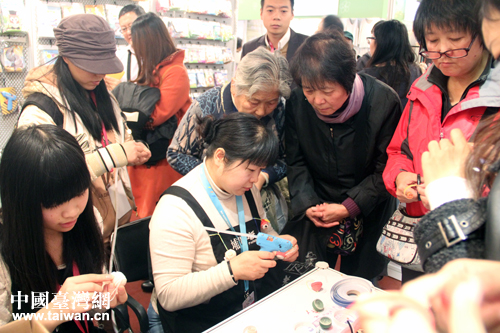 埔里造紙龍已經不是第一次來文博會,展位前依然圍滿了前來體驗其奇妙工藝的大陸民眾。(中國臺灣網 楊麗 攝)