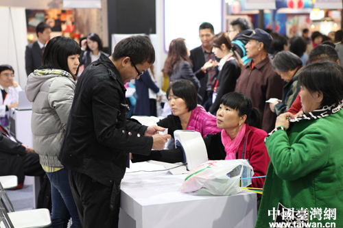 眾多參展者在醫(yī)美館做健檢咨詢。(中國臺灣網(wǎng) 發(fā))