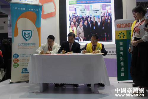 展會上,部分參展業(yè)者簽署合作協(xié)議。(中國臺灣網(wǎng) 發(fā))